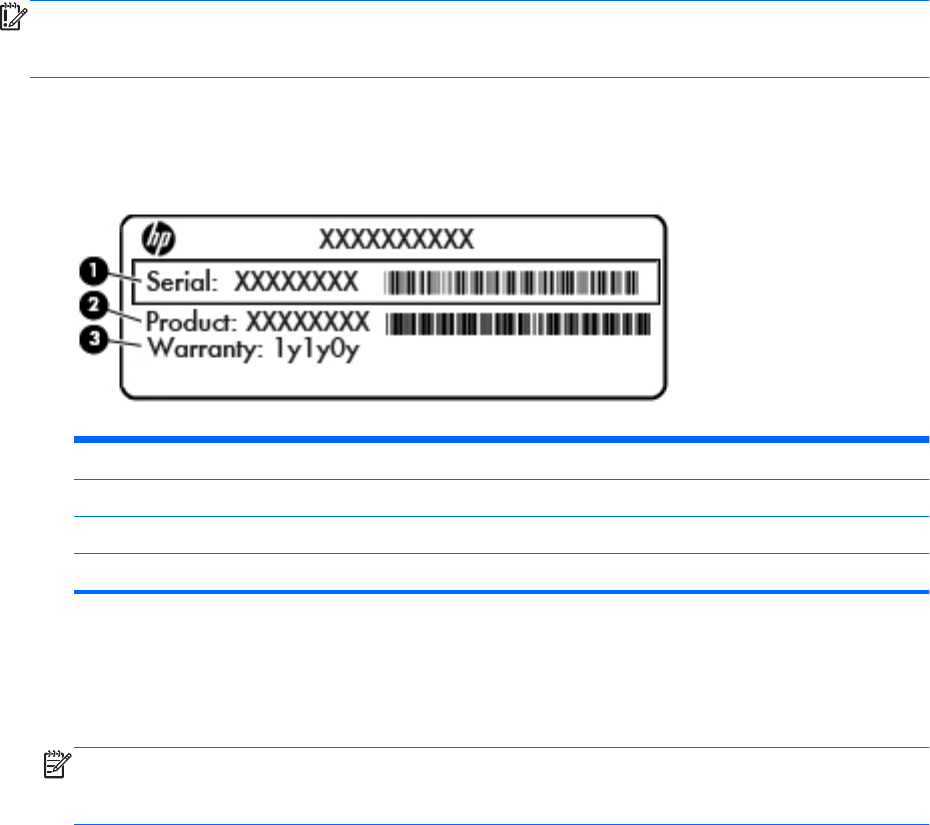 Serviceetikett - Inneholder viktig informasjon for å identifisere datamaskinen. Når du kontakter