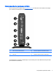 Composants du panneau arrière Pour en savoir plus, consultez le site http://www.hp.com et recherchez votre modèle de client léger pour accéder aux QuickSpecs correspondant au modèle. (1) Port de connexion Ethernet RJ-45 (5) Entrée de l'adaptateur d'alimentation externe (2) Port d'affichage duel 1,2 (2) (6) Support du dispositif antivol (3) Port VGA (7) Module de rétention HP du port USB Legacy (4) Ports USB 2.