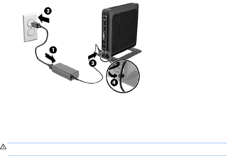 1. Stecken Sie das weibliche Ende des Netzkabels in das externe Netzteil (1) ein.