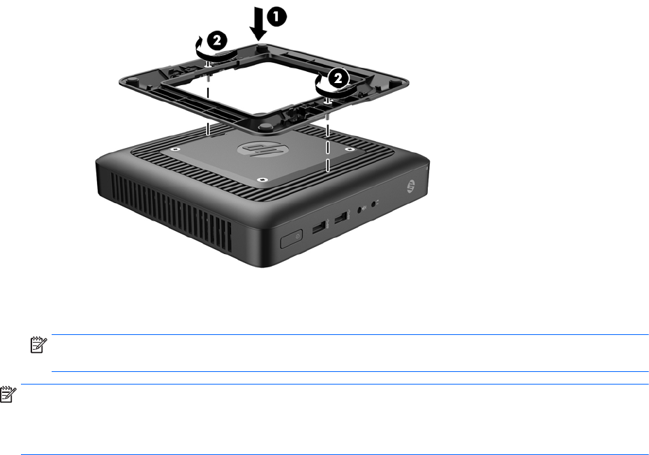 b. Positionieren Sie den Stand (1) über die Seite des Thin Client und richten Sie die