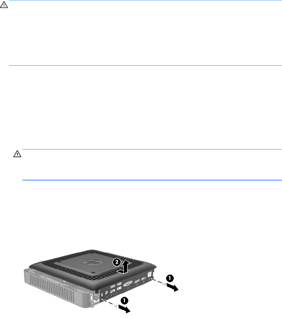 1. Entfernen/deaktivieren Sie alle Sicherheitsvorrichtungen, die das Öffnen des Thin Client