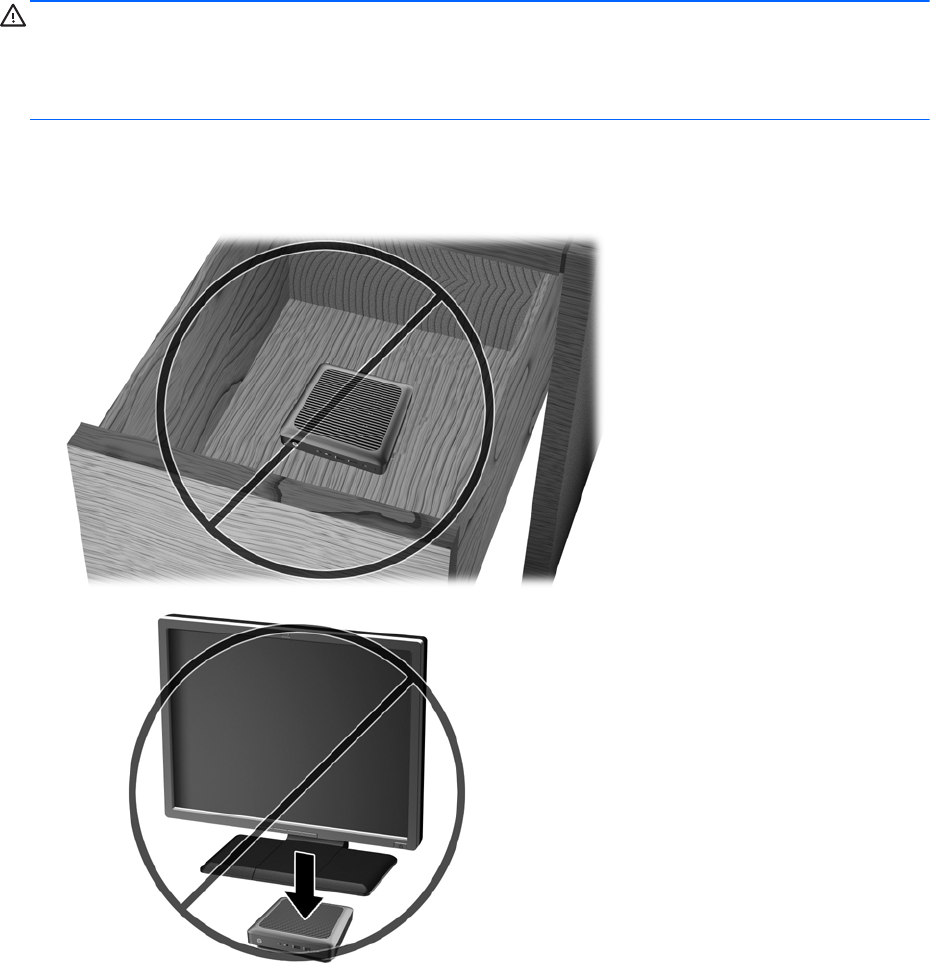 Stellen Sie Thin Clients nicht in Schubladen oder andere enge Räume ohne Luftzufuhr. Stellen Sie