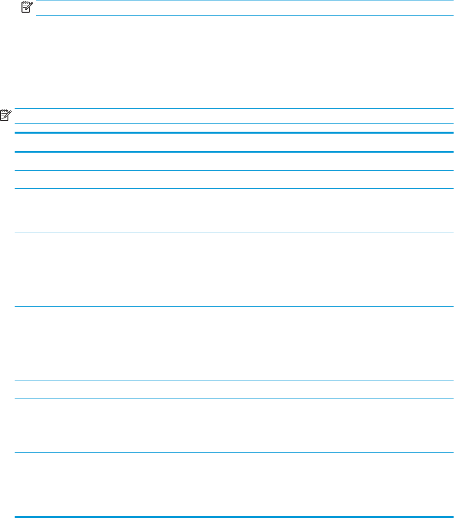 MERK: Se tabellen nedenfor for en liste over innstillingene.