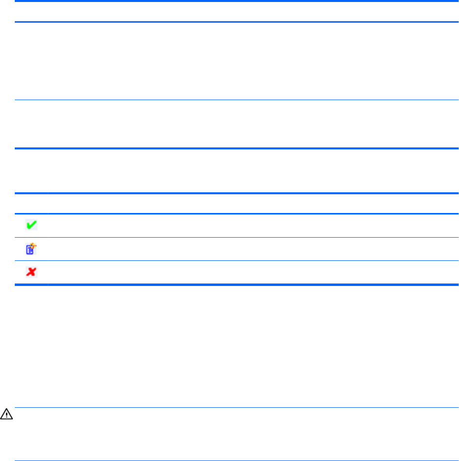 下表介绍了 HP Unied Write Filter Conguration 工具中用于排除列表的图标。