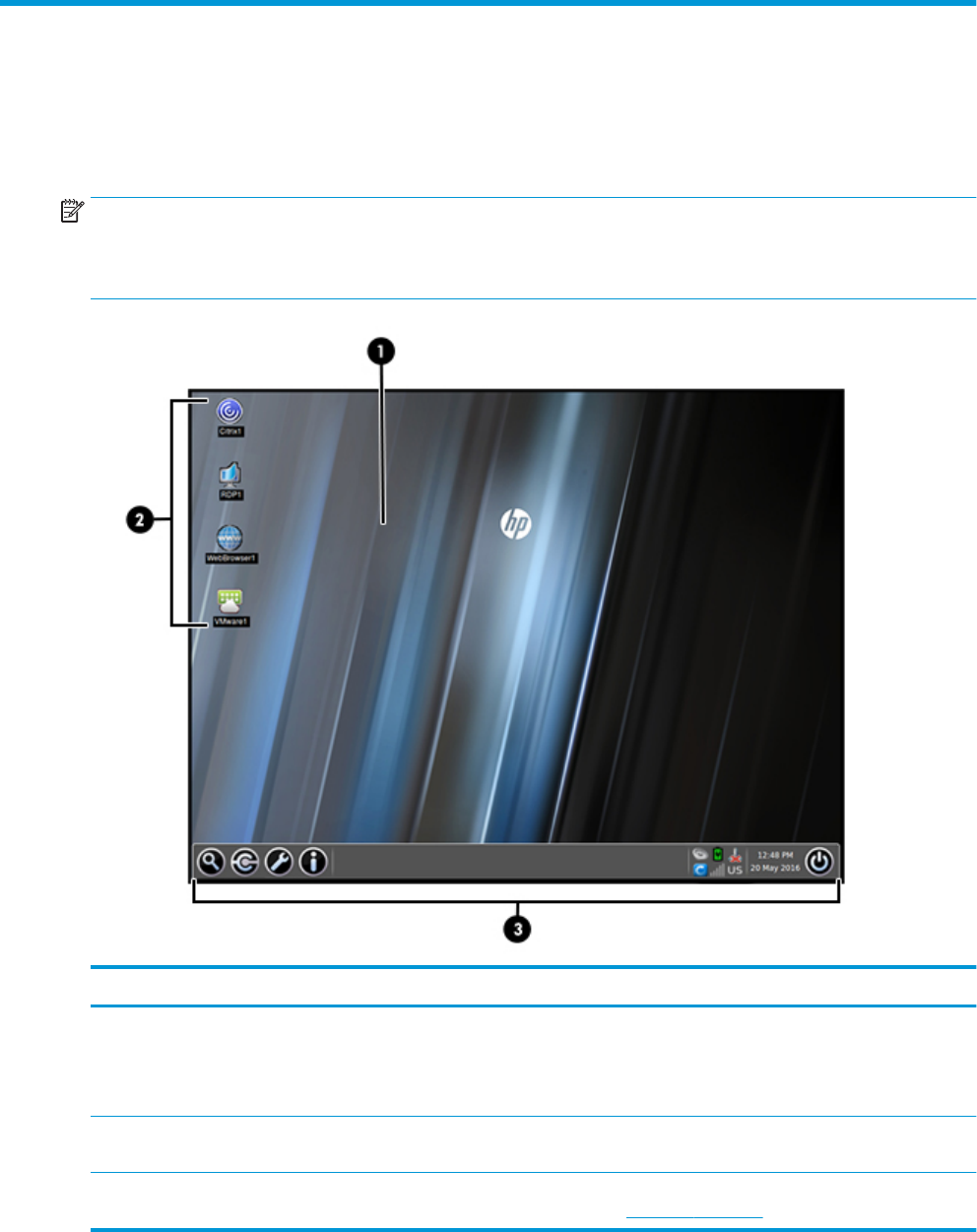 HINWEIS: In der folgenden Abbildung wird der Desktop für ThinPro mit einem US-Gebietsschema