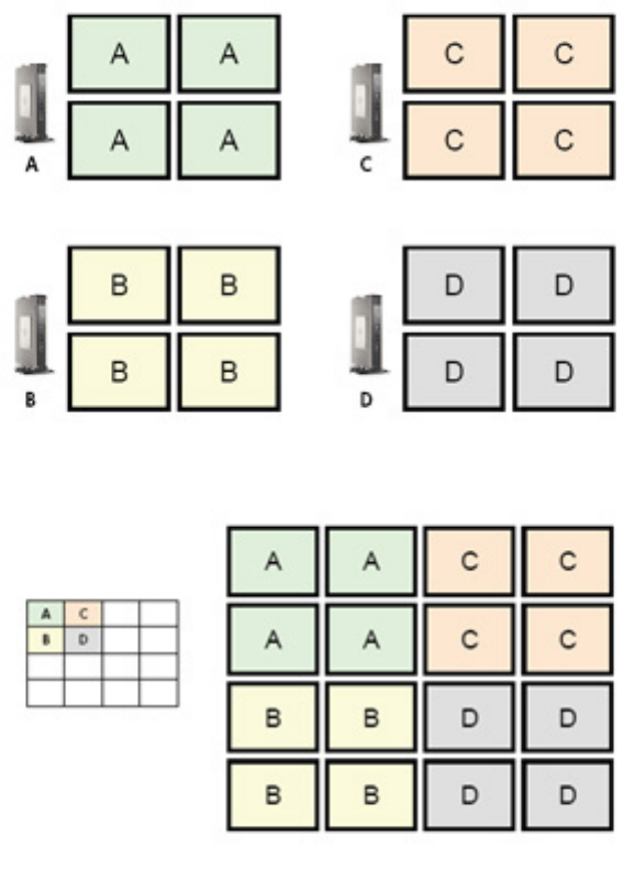 Angenommen, Sie haben vier Thin Clients mit jeweils vier Monitoren, die in einem 2 x 2-Array konguriert