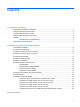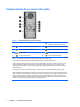 Cuprins 1 Caracteristicile produsului Caracteristici standard de configuraţie ................................................................................................. 1 Componentele de pe panoul frontal ..................................................................................................... 2 Componentele cititorului de carduri ...................................................................................................... 3 Componentele de pe panoul din spate ..................