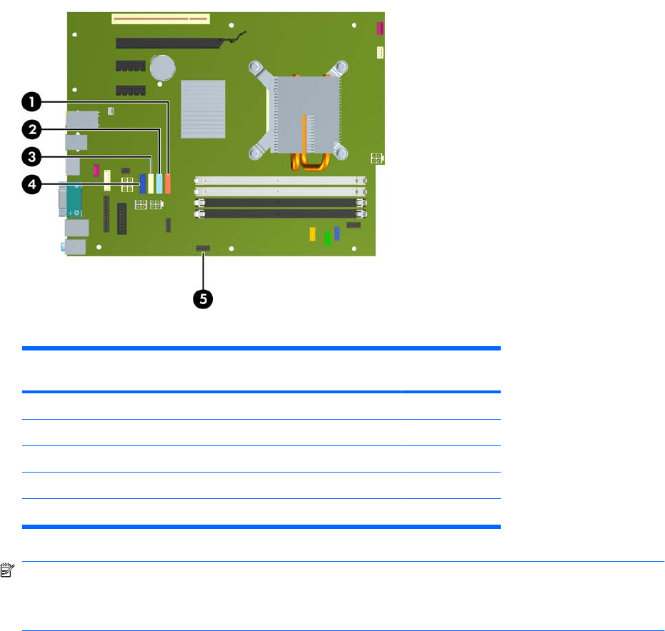 NOTĂ: Conectorul SATA3 portocaliu poate fi reconfigurat ca eSATA din utilitarul Computer Setup
