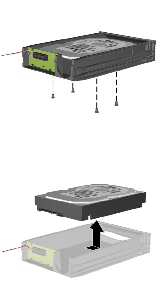 4. Scoateţi cele patru şuruburi din partea de jos a suportului unităţii de disc.