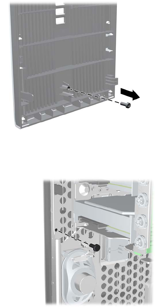 8. Instalaţi şurubul prin interiorul părţii frontale a şasiului în masca frontală. Gaura pentru şurub este