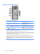 Dijelovi čitača medijskih kartica Čitač medijskih kartica dodatni je uređaj koji je dostupan samo na nekim modelima. Pomoću ove slike i tablice prepoznat ćete dijelove čitača medijskih kartica. Slika 1-2 Dijelovi čitača medijskih kartica Tablica 1-2 Dijelovi čitača medijskih kartica Br.