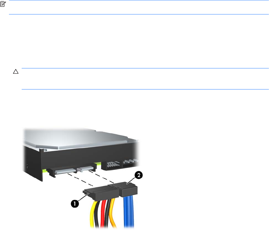6. Afbryd strømkablet (1) og datakablet (2) fra harddiskens bagside.