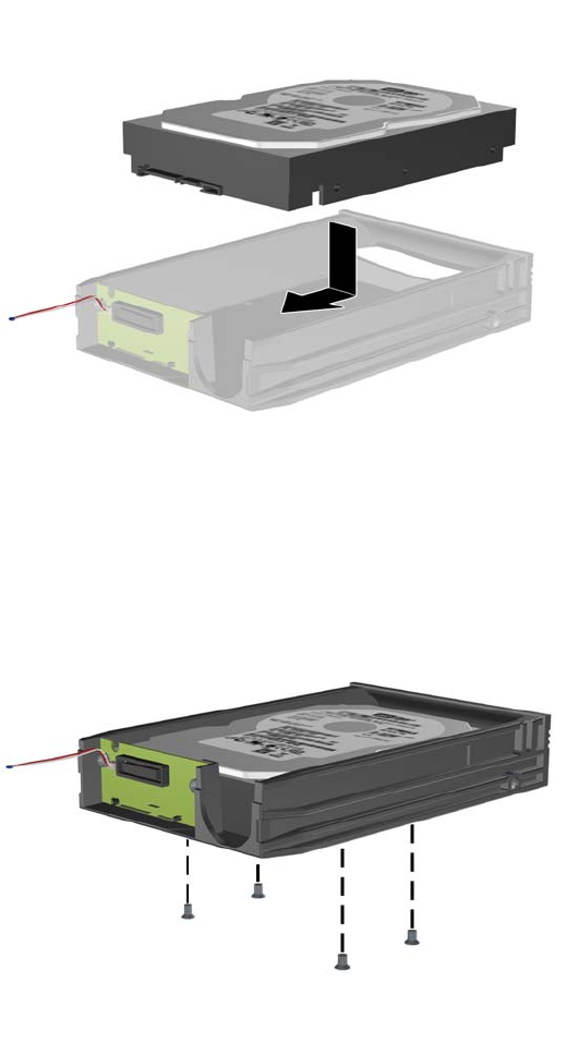 6. Anbring den nye harddisk i holderen og skub derefter harddisken tilbage, så den glider på plads i