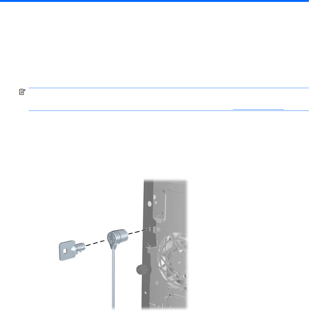 Sikkerhedslåsene, der vises nedenfor og på de følgende sider, kan bruges til at sikre computeren.