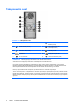 Takapaneelin osat Taulukko 1-3 Takapaneelin osat 1 Virtajohdon vastake 6 Äänen lähtöliitin virtalähdettä tarvitseville laitteille (vihreä) 2 Äänen tuloliitin (sininen) 7 PS/2-näppäimistön liitin (vaaleanpunainen) 3 PS/2-hiiren liitin (vihreä) 8 VGA-näytön liitin 4 Sarjaliitäntä 9 DisplayPort-näytön liitin 5 RJ-45-verkkoliitin 10 Universal Serial Bus (USB) HUOMAUTUS: Liittimien järjestys ja lukumäärä voivat vaihdella mallin mukaan.