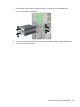 7. Siirrä aseman vapautusvipua poispäin asemasta (1) ja irrota asema asemapaikasta (2).