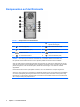 Komponenten auf der Vorderseite Die Anordnung der Laufwerke kann von Modell zu Modell unterschiedlich sein. Tabelle 1-1 Komponenten auf der Vorderseite 1 Optische Laufwerke, 5,25 Zoll1 6 Auswurftasten für optische Laufwerke 2 LED-Anzeigen für optische Laufwerke 7 3,5-Zoll-Speicherkarten-Lesegerät (optional), 3,5 Zoll2 3 LED-Anzeige des Festplattenlaufwerks 8 Dual-State-Netzschalter 4 Mikrofon-/Kopfhöreranschluss 9 Betriebsanzeige 5 USB (Universal Serial Bus) 2.