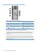 Cuprins 1 Caracteristicile produsului Caracteristici standard de configuraţie ................................................................................................. 1 Componentele de pe panoul frontal ..................................................................................................... 2 Componentele cititorului de carduri ...................................................................................................... 3 Componentele de pe panoul din spate ..................