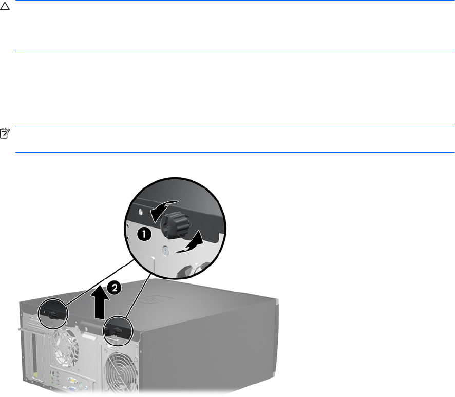 5. Ослабте два незнімні гвинти з рифленою головкою (1), які кріплять знімну панель до корпусу