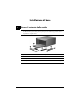 Installazione di base 1 Estrarre il contenuto dalla scatola le caratteristiche e le opzioni del computer possono variare in base al modello. ✎ IlLecolore, illustrazioni riportate nella presente guida possono risultare leggermente diverse da quelle del computer in uso. Componente Componente 1 Adattatore CA 3 Batteria 2 Computer 4 Cavo di alimentazione ✎ L'aspetto di batterie e cavi di alimentazione varia in base al Paese o alla regione.