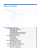 Table of contents 1 Features ........................................................................................................................................................... 1 Identifying hardware ............................................................................................................................. 1 Top components .................................................................................................................. 1 Pointing devices ...........................
