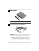 Basic Setup 2 Insert the battery To reduce potential safety issues, use only the AC adapter or battery Å WARNING: provided with the computer, a replacement AC adapter or battery provided by HP, or a compatible AC adapter or battery purchased as an accessory from HP. 3 Connect the computer to external power To reduce the risk of electric shock or damage to your equipment, observe Å WARNING: these practices: ■ Plug the power cord into an AC outlet that is easily accessible at all times.