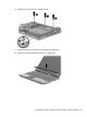 7. Выверните 3 винта (1), крепящие крышку жесткого диска.