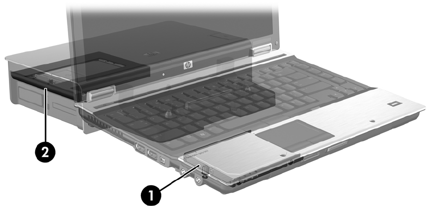 tvrdog diska (1) i dodatnog diska u SATA odjeljku na HP-ovoj naprednoj priključnoj stanici(2).