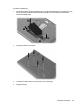 8. Tõstke mälumooduli lahtri kate (2) üles, arvutist eemale.