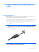 To connect a USB device to the computer, connect the USB cable for the device to the USB