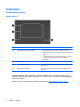 (2) skārienpaneļa zona Pārvieto rādītāju un izvēlas vai aktivizē objektus ekrānā.