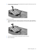 2. Poravnajte nožice (1) na poklopcu čvrstog diska sa urezima na računaru.