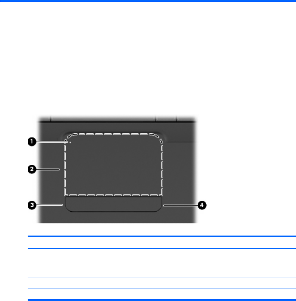L'illustrazione e la tabella seguenti descrivono il TouchPad del computer.