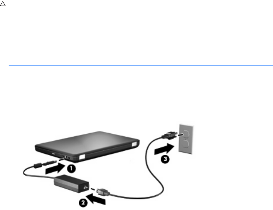 Per collegare il computer all'alimentazione CA esterna, seguire le istruzioni riportate di seguito: