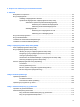 8 Tilføjelse eller udskiftning af et hukommelsesmodul 9 Sikkerhed Beskyttelse af computeren ................................................................................................................. 93 Brug af adgangskoder ........................................................................................................................ 94 Indstilling af adgangskoder i Windows ...............................................................................