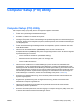 Tabelle 4 Computer Setup – Security (Sicherheit) (Fortsetzung) Option Beschreibung Embedded Security Device Support (bestimmte Modelle) (Unterstützung eines Embedded SecurityGeräts) (Aktivieren/Deaktivieren). Ermöglicht die Aktivierung und Deaktivierung des Embedded Security-Geräts. Zum Ändern dieser Einstellung muss der Computer ausgeschaltet und anschließend wieder eingeschaltet werden. HINWEIS: Zum Konfigurieren des Embedded Security-Geräts muss ein Setup-Kennwort festgelegt werden.