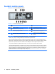 Součásti čtečky karet médií Čtečka karet médií je volitelné zařízení, které je k dispozici pouze u některých modelů. Součásti čtečky karet médií můžete určit pomocí následujícího obrázku a tabulky. Obrázek 1-3 Součásti čtečky karet médií Tabulka 1-2 Součásti čtečky karet médií Č.