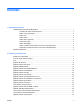 Innehåll 1 Diagnostiska funktioner Hewlett-Packard Vision Field Diagnostics ............................................................................................ 1 Använda HP Vision Field Diagnostics ................................................................................. 1 Fliken Survey (Överblick) ..................................................................................................... 2 Fliken Test ..............................................................................