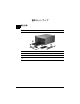 製品情報お よび ト ラ ブルシ ュ ーテ ィ ン グ コ ン ピ ュ ー タ ーの持ち運び コンピューターは外出先に持ち運べるように設計されています。最適な状態で使用 するには、持ち運びおよび送付に関する以下の情報をお読みください。 ■ コンピューターを持ち運んだり荷物として送ったりする場合は、以下の準備を 行います。 1. 情報をバックアップします。 2. すべての外付けメディア カードを取り出します。 注意 : コ ン ピ ュ ー タ ーや ド ラ イ ブの損傷、 または情報の損失を防ぐ ため、 ド ラ イ ブ ベ イ Ä から の ド ラ イ ブの取 り 外 し 、 ド ラ イ ブの保管、 送付、 持ち運びな ど を行 う 前に、 ド ラ イ ブ から メ デ ィ ア を取 り 出 し ます。 3. すべての外付けデバイスをオフにして、コンピューター本体から取り外しま す。 4.
