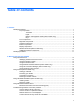 Table of contents 1 Features Identifying hardware ............................................................................................................................. 1 Top components .................................................................................................................. 1 TouchPad ............................................................................................................ 1 Lights ..........................................................................
