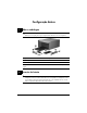 Configuração básica 3 Conecte o computador a uma fonte de alimentação externa ADVERTÊNCIA: Para reduzir o risco de choque elétrico ou danos ao seu equipamento, Å observe as seguintes medidas: ■ Conecte o cabo de alimentação a uma tomada de CA cujo acesso seja sempre fácil. ■ Desconecte o computador da alimentação retirando o cabo de alimentação da tomada de CA (não desconectando o cabo de alimentação do computador).