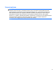 Kasdienė priežiūra Ekrano valymas ĮSPĖJIMAS: kad nesugadintumėte kompiuterio, niekada nepurkškite ant ekrano vandens, valymo skysčių arba chemikalų. Jei nuo ekrano norite pašalinti dėmes ir pūkelius, reguliariai valykite jį minkštu, drėgnu ir nesiveliančiu audiniu. Jei ekraną reikia valyti papildomai, naudokite drėgnas antistatines šluostes arba antistatinį ekrano valiklį. Kaip valyti jutiklinę planšetę ir klaviatūrą Jei ant jutiklinės planšetės yra purvo ar riebalų dėmių, žymiklis gali šokčioti po ekraną.