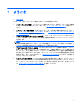 どの外付け VGA ディスプレイ デバイスをコンピューターに接続するための、アナログ ディスプレ イ インターフェイスです。 ▲ VGA ディスプレイ デバイスを接続するには、デバイスのケーブルを外付けモニター コネクタに 接続します。 注記: コンピューターに接続されているディスプレイ デバイス間で画面を切り替えるには、f4 キーを押します。 動画 21