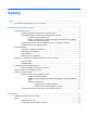 Sadržaj 1 Uvod ................................................................................................................................................................. 1 Pronalaženje više informacija o novom računalu ................................................................................. 1 2 Mrežni rad (samo odabrani modeli) .............................................................................................................. 2 Stvaranje bežične veze ..............................