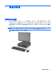 1 製品の特長 標準構成の機能 HP Compaq 省スペース型コンピューターの機能は、モデルによって異なる場合があります。お使い のコンピューターに取り付けられているハードウェアおよびインストールされているソフトウェアの 一覧を表示するには、診断用ユーティリティを実行します(一部のモデルのコンピューターにのみ付 属しています)。ユーティリティの使用手順については、『トラブルシューティング ガイド』を参照し てください。 注記: 省スペース型コンピューターは、縦置きで使用することもできます。詳しくは、このガイド の14 ページの 「縦置きでの省スペース型コンピューターの使用」を参照してください。 図 1-1 省スペース型コンピューターの構成 標準構成の機能 1