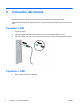 2. ESWW Extraiga el adaptador PS2, si es necesario, del extremo del conector del cable, y a continuación enchufe el conector USB al conector USB del equipo.