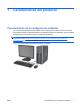 1 Características del producto Características de la configuración estándar Las características de la minitorre convertible de HP Compaq pueden variar en función del modelo. Para obtener una lista completa del hardware y el software instalados en el ordenador, ejecute la utilidad de diagnóstico (solo incluida en algunos modelos de ordenadores). NOTA: El HP Compaq minitorre convertible se puede convertir fácilmente en un ordenador de escritorio.