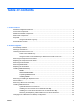 Table of contents 1 Product Features Standard Configuration Features ......................................................................................................... 1 Front Panel Components ..................................................................................................................... 2 Media Card Reader Components ......................................................................................................... 3 Rear Panel Components ................................