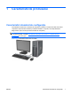 1 Caracteristicile produsului Caracteristici standard de configuraţie Caracteristicile miniturnului convertibil HP Compaq pot fi diferite în funcţie de model. Pentru lista completă a componentelor hardware şi software instalate în computer, executaţi utilitarul de diagnosticare (inclus numai pe anumite modele de computere). NOTĂ: Miniturnul convertibil HP Compaq poate fi transformat uşor într-un computer de birou.