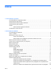 Índice 1 Funcionalidades do produto Funcionalidades da configuração padrão ............................................................................................ 1 Componentes do painel frontal ............................................................................................................ 2 Componentes do leitor de cartões multimédia ..................................................................................... 3 Componentes do painel posterior ....................................